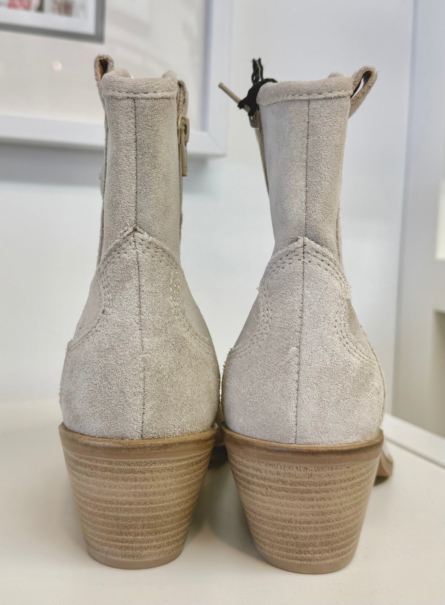 These Western-inspired cowboy neutral boots look amazing when paired with your favourite denim pieces or boho inspired dresses and skirts. Featuring a leather upper and a zippered side fastening and finished off with a short block heel (6cm)