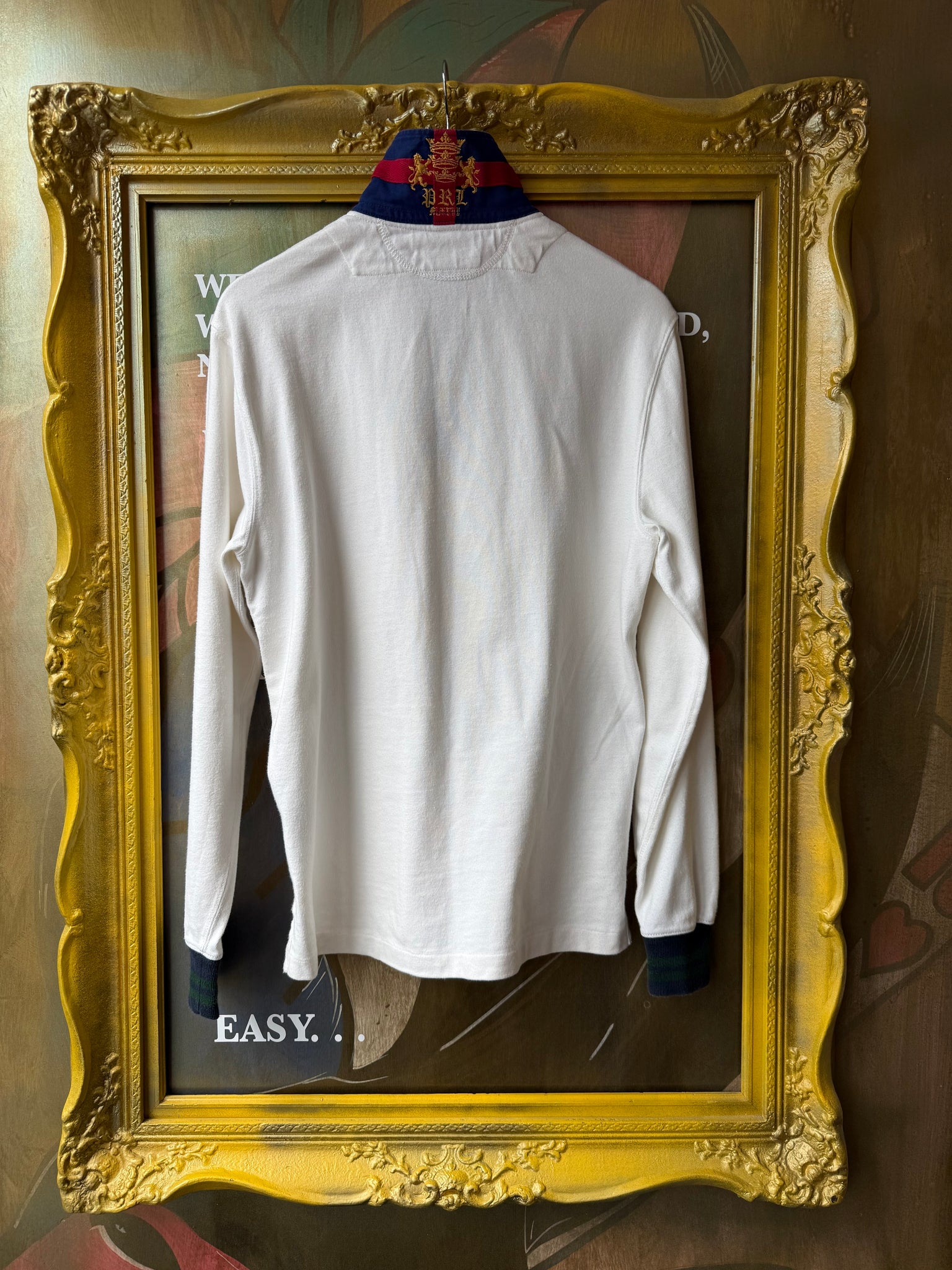 Gold lions embroidered on back of collar